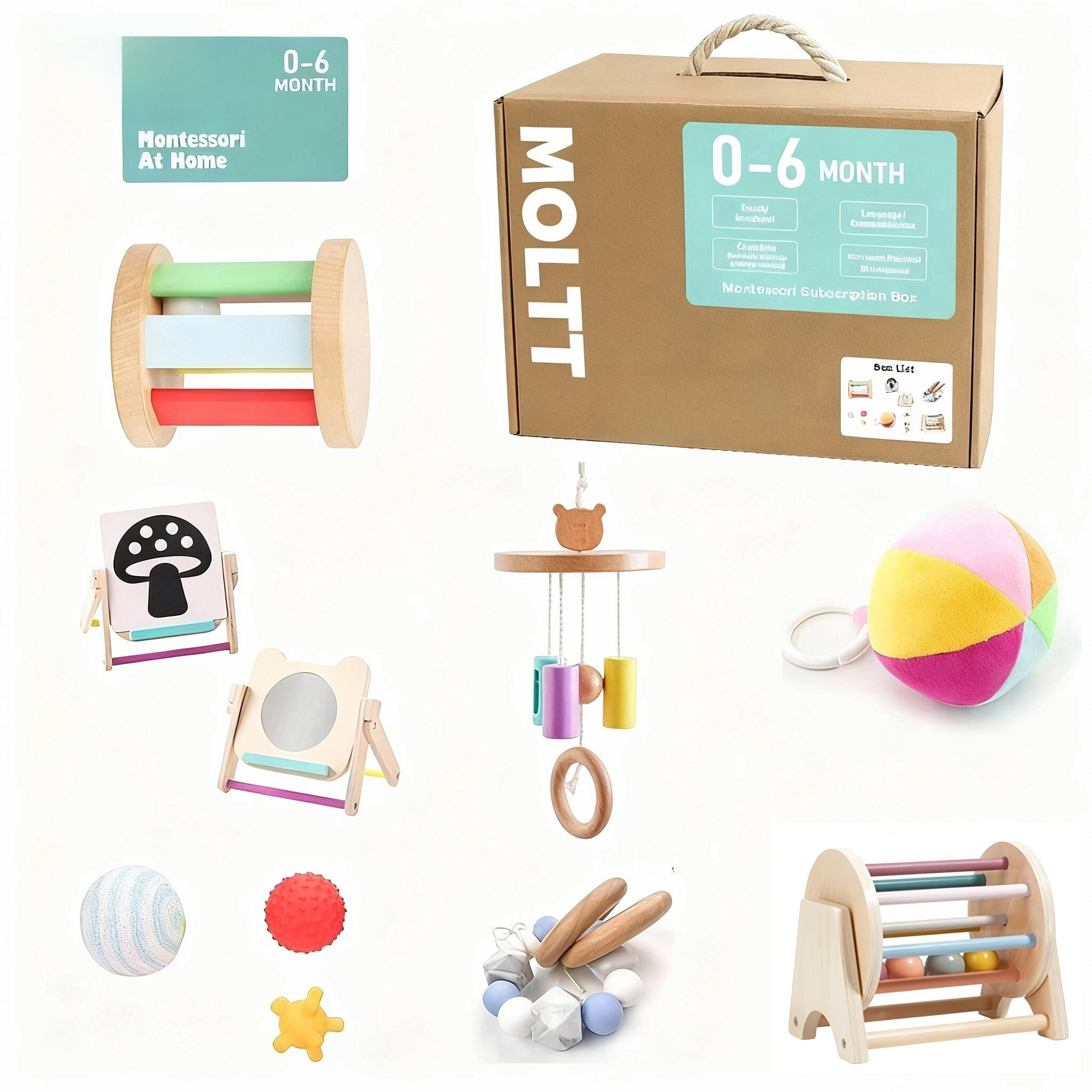 Embárquese en un viaje sensorial rico con el juego de juguetes Montessori de Bimbly, diseñado para bebés de 0 a 6 meses. Cada juguete, cuidadosamente seleccionado para respaldar los primeros hitos cognitivos y físicos, corresponde a etapas clave del desarrollo y guía el crecimiento de su bebé a través del juego con un propósito. Completo con favoritos como elPalo de lluvia giratorio (5 a 6 meses)y elCaja de pañuelos Montessori (6+ meses), esta colección crece con su hijo.