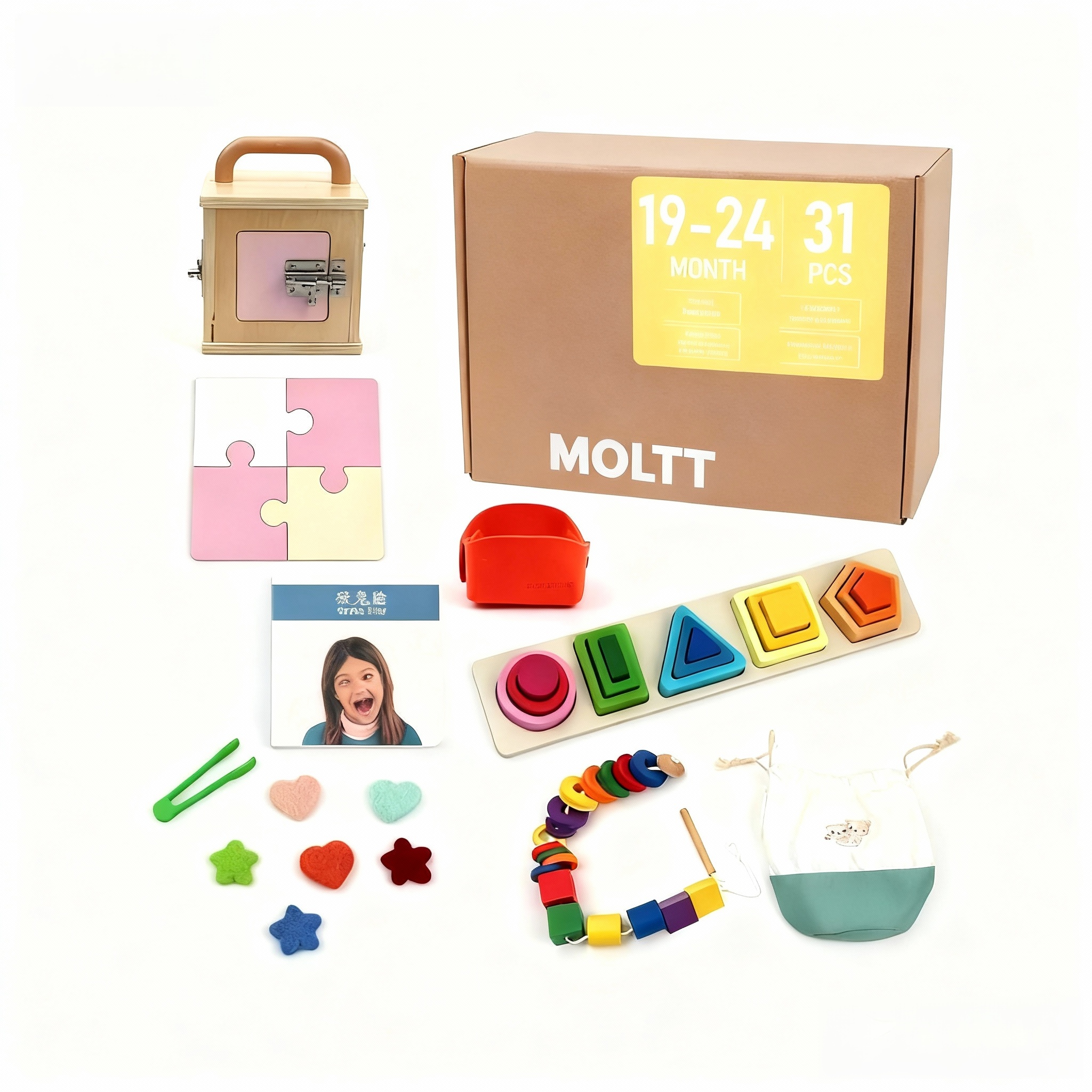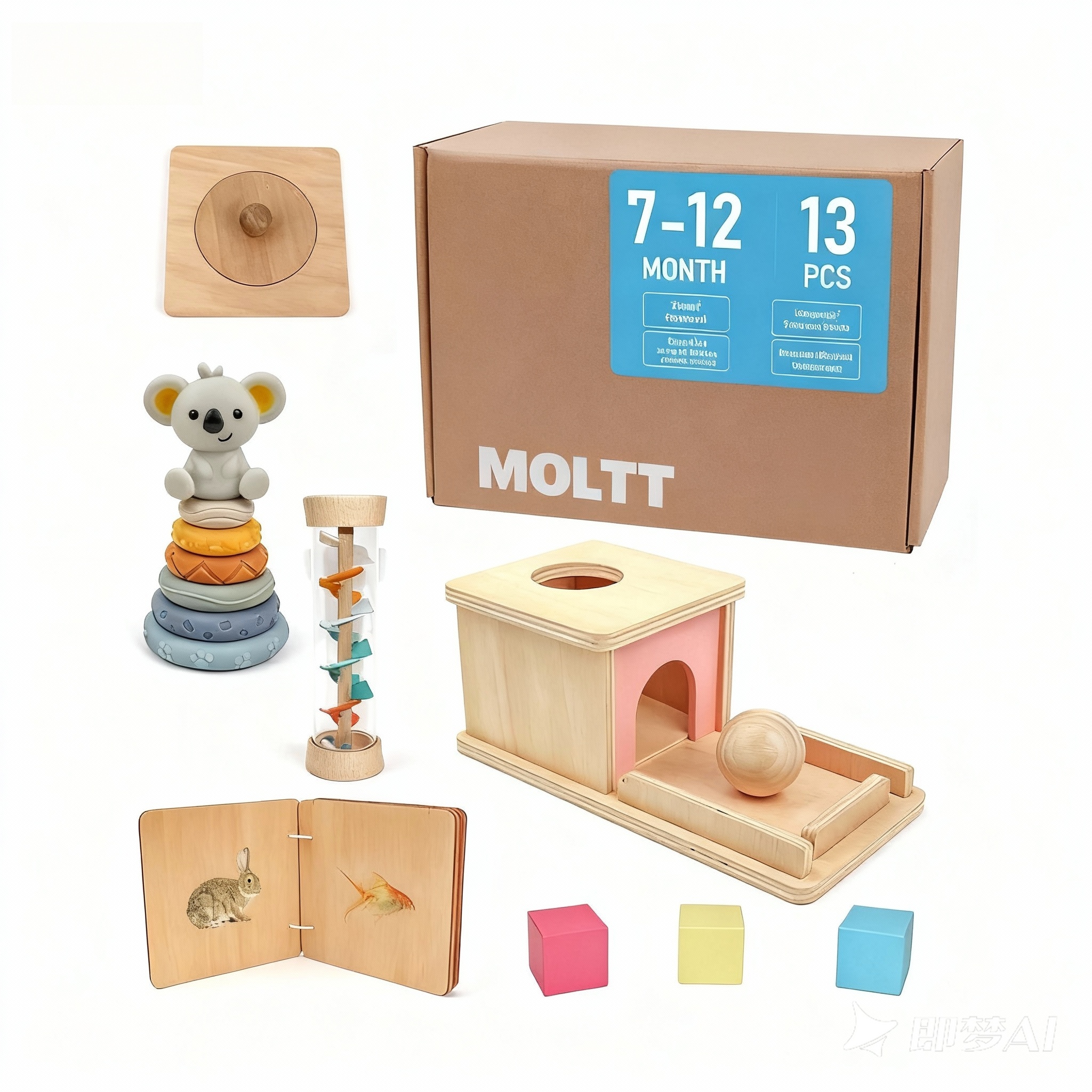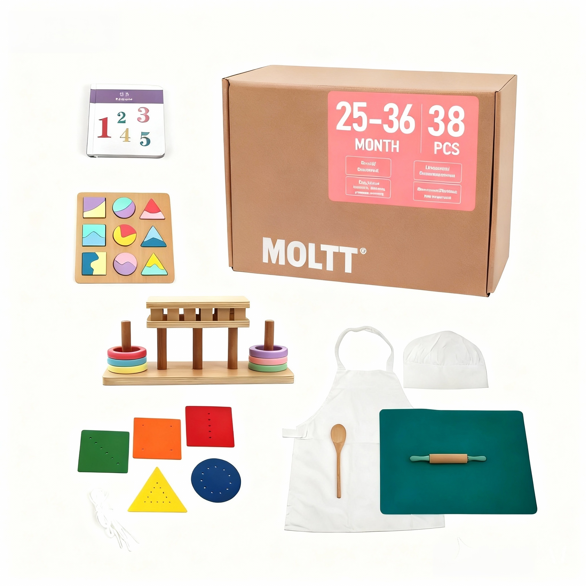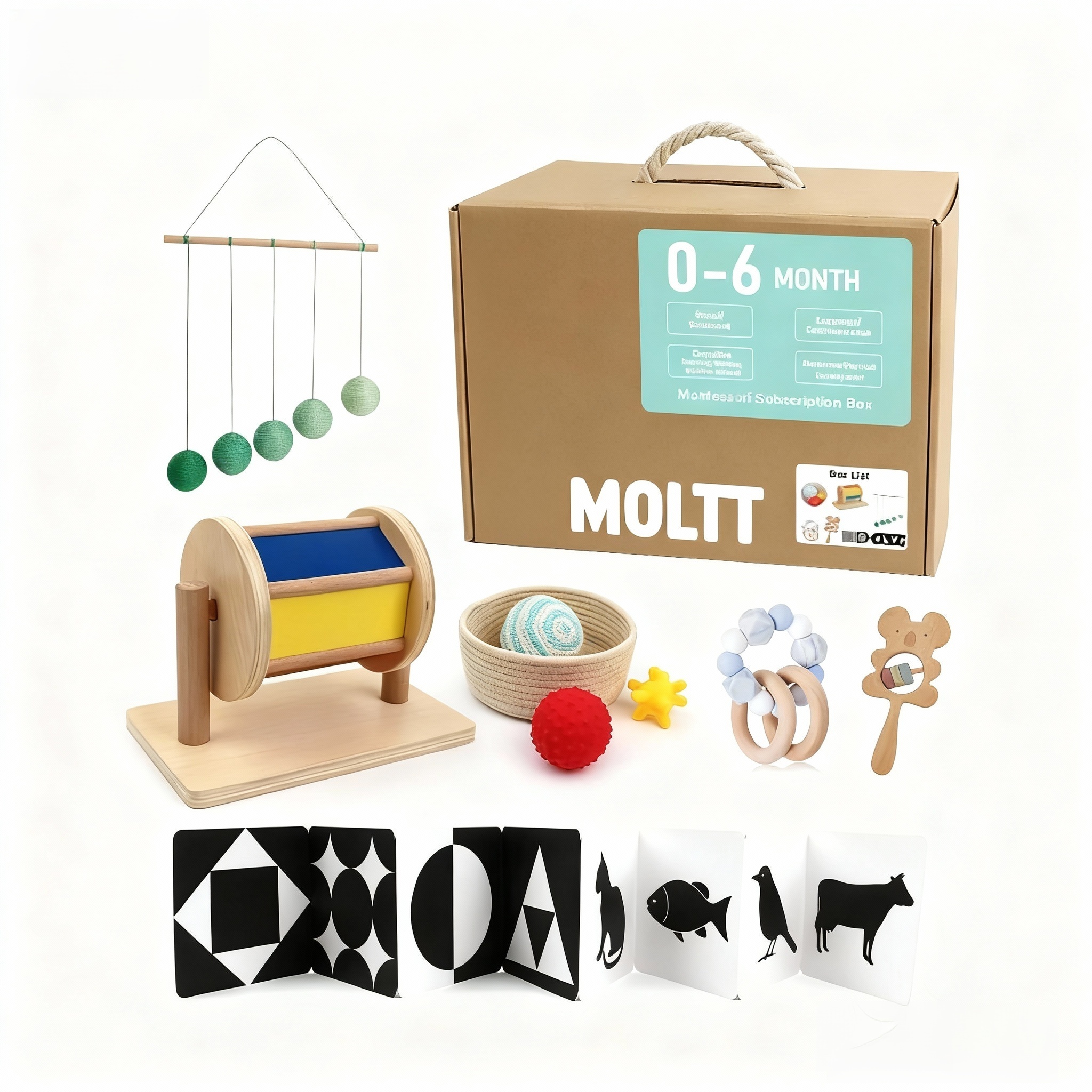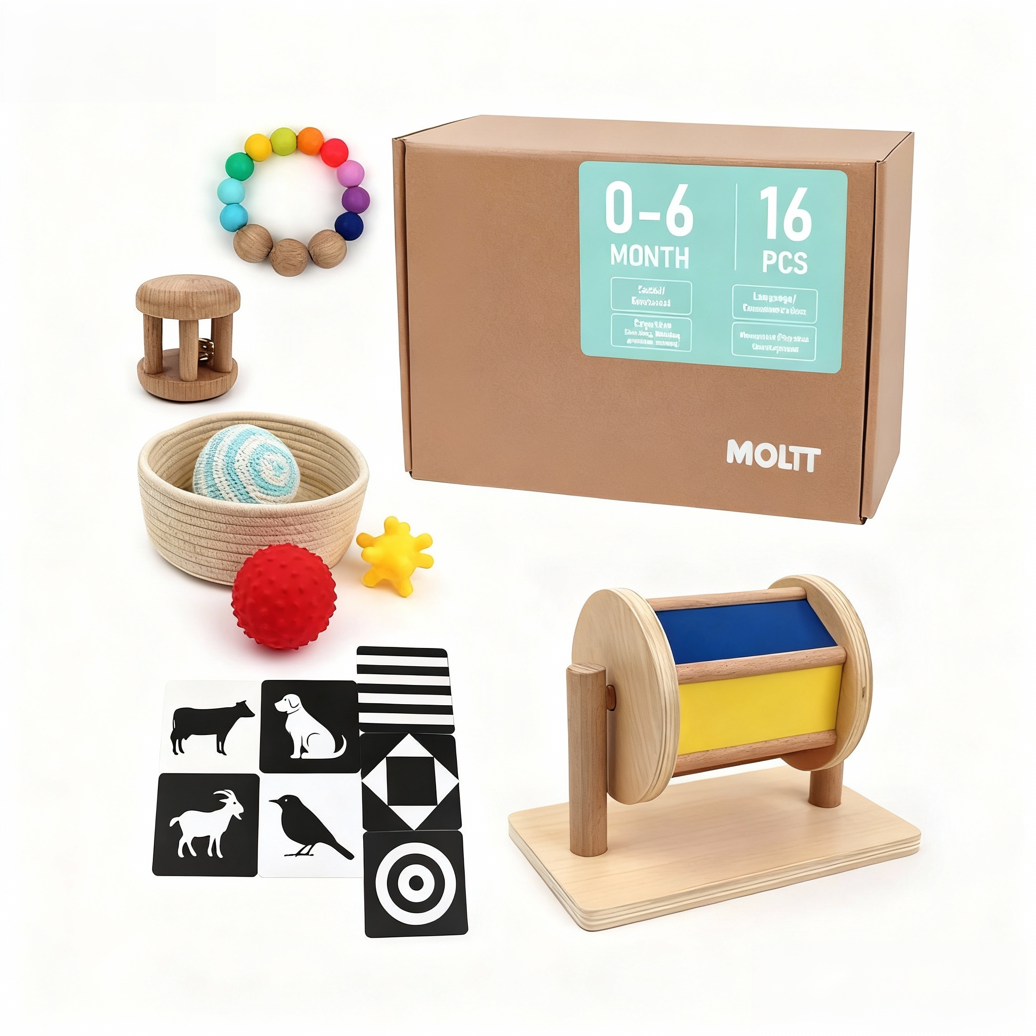 Inspirado en los principios Montessori, este conjunto educativo cuidadosamente seleccionado está diseñado para fomentar el juego con propósito, el desarrollo temprano y la curiosidad natural en los bebés.