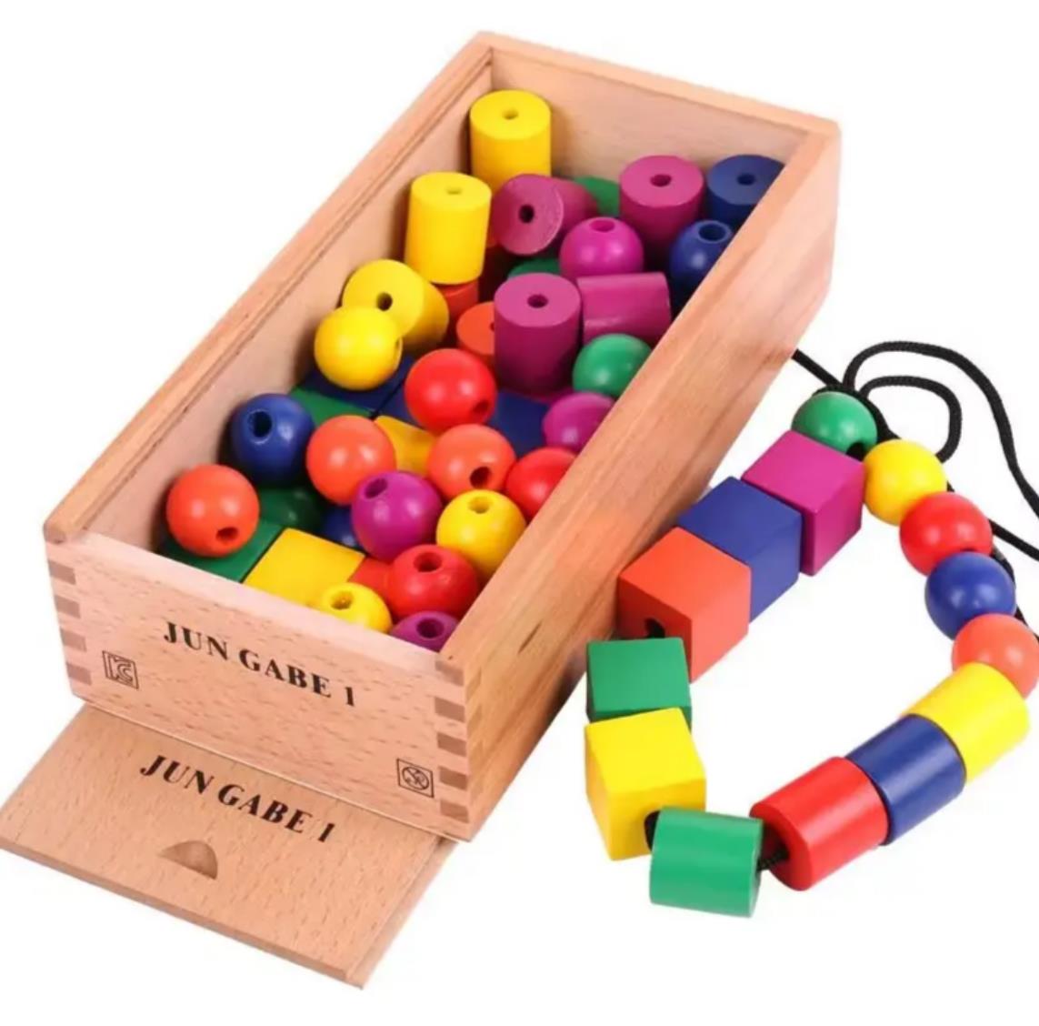Dominio de la motricidad fina y coordinación mano-ojo: la actividad principal de enhebrar cuentas en el cordón incluido es un ejercicio por excelencia para fortalecer el agarre de pinza, refinar los movimientos precisos de la mano y desarrollar la coordinación esencial para tareas futuras como escribir.