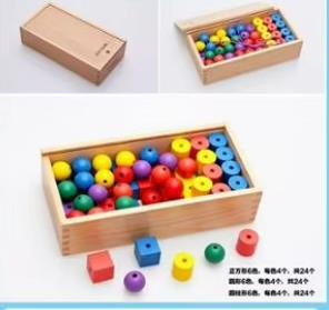 Mejora la discriminación visual y la resolución de problemas: clasificar cuentas por atributo (forma o color) y completar un patrón de enhebrado requiere observación, toma de decisiones y pensamiento lógico.