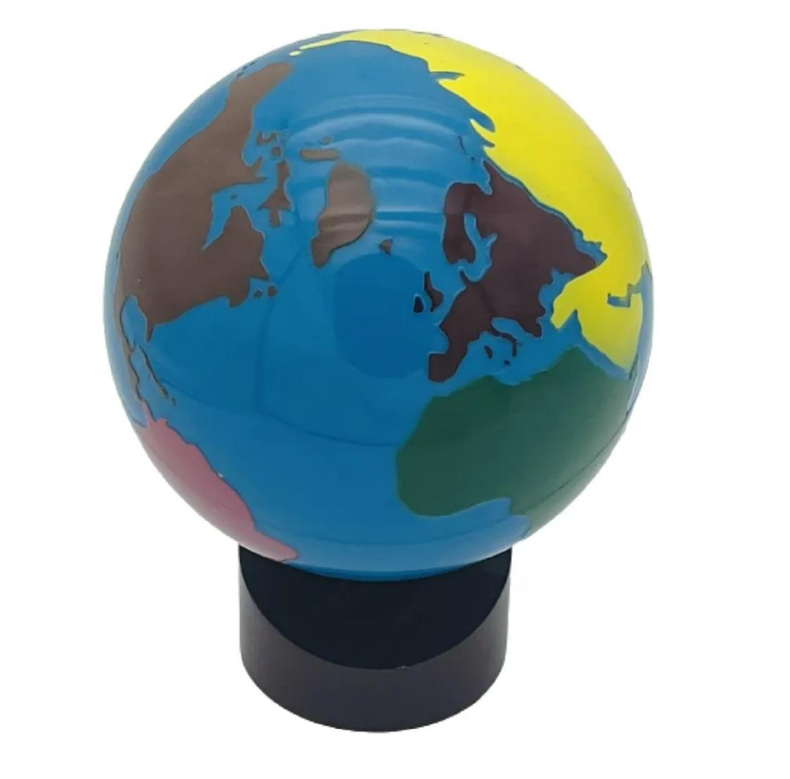 Función: Hace que el niño pase de la experiencia sensorial del globo de papel de lija a la tarea cognitiva de aprender los nombres de los continentes y sus posiciones globales.