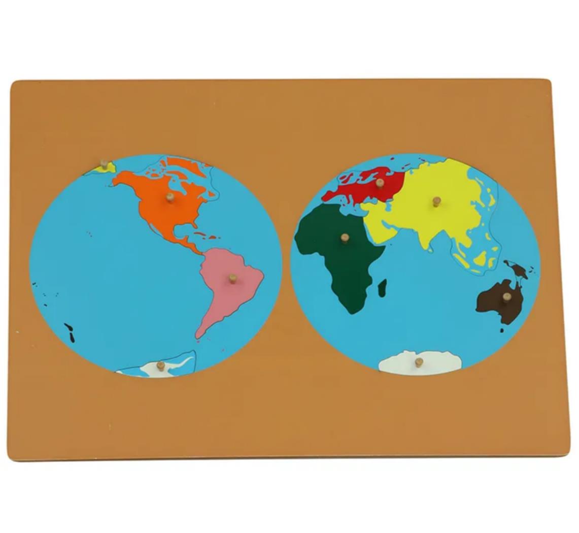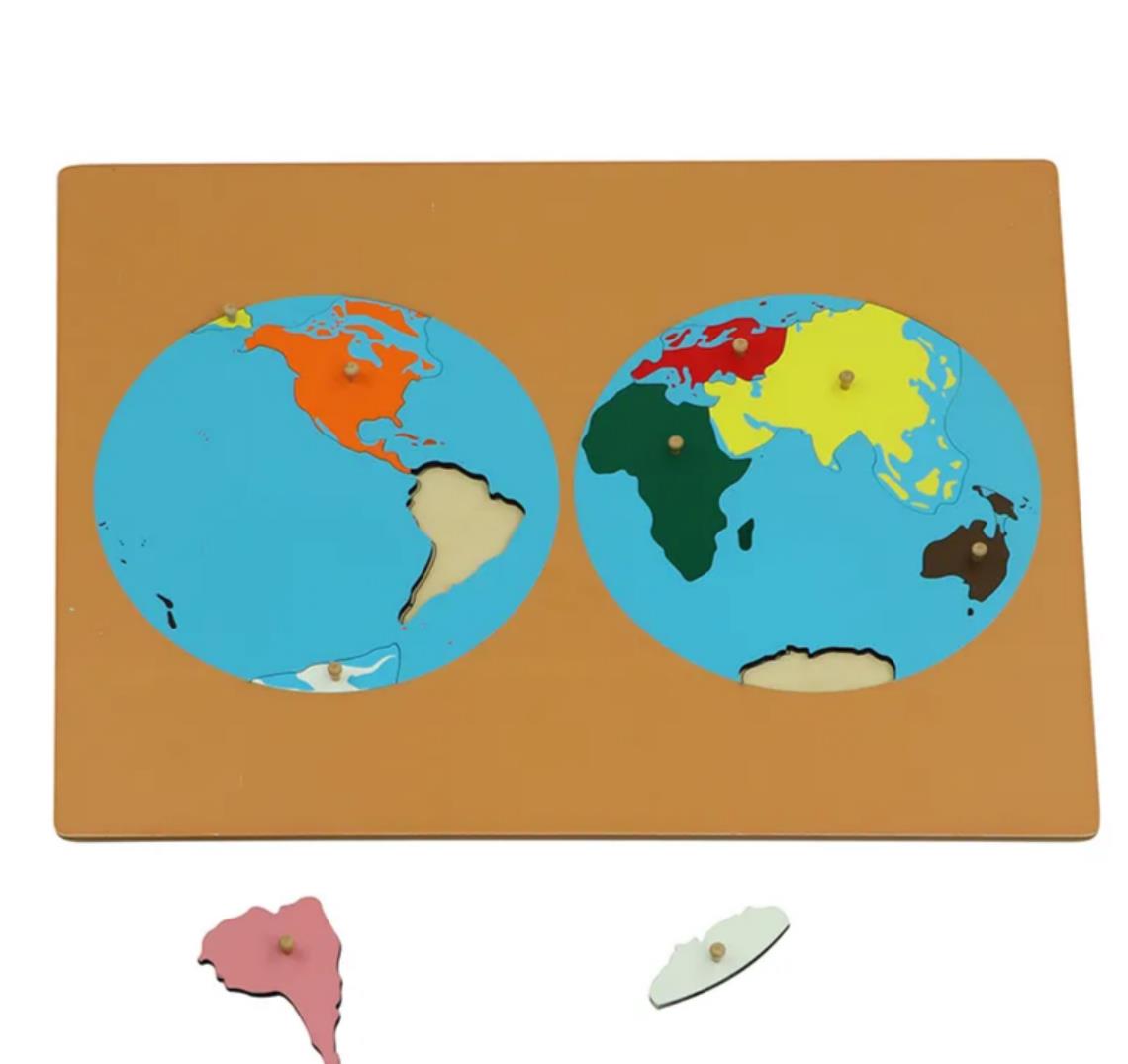 Diseño y acabado: Cada continente está representado como una pieza de madera lisa e independiente, a menudo codificada por colores según los estándares Montessori. Las piezas están diseñadas para que las manos pequeñas las agarren fácilmente.