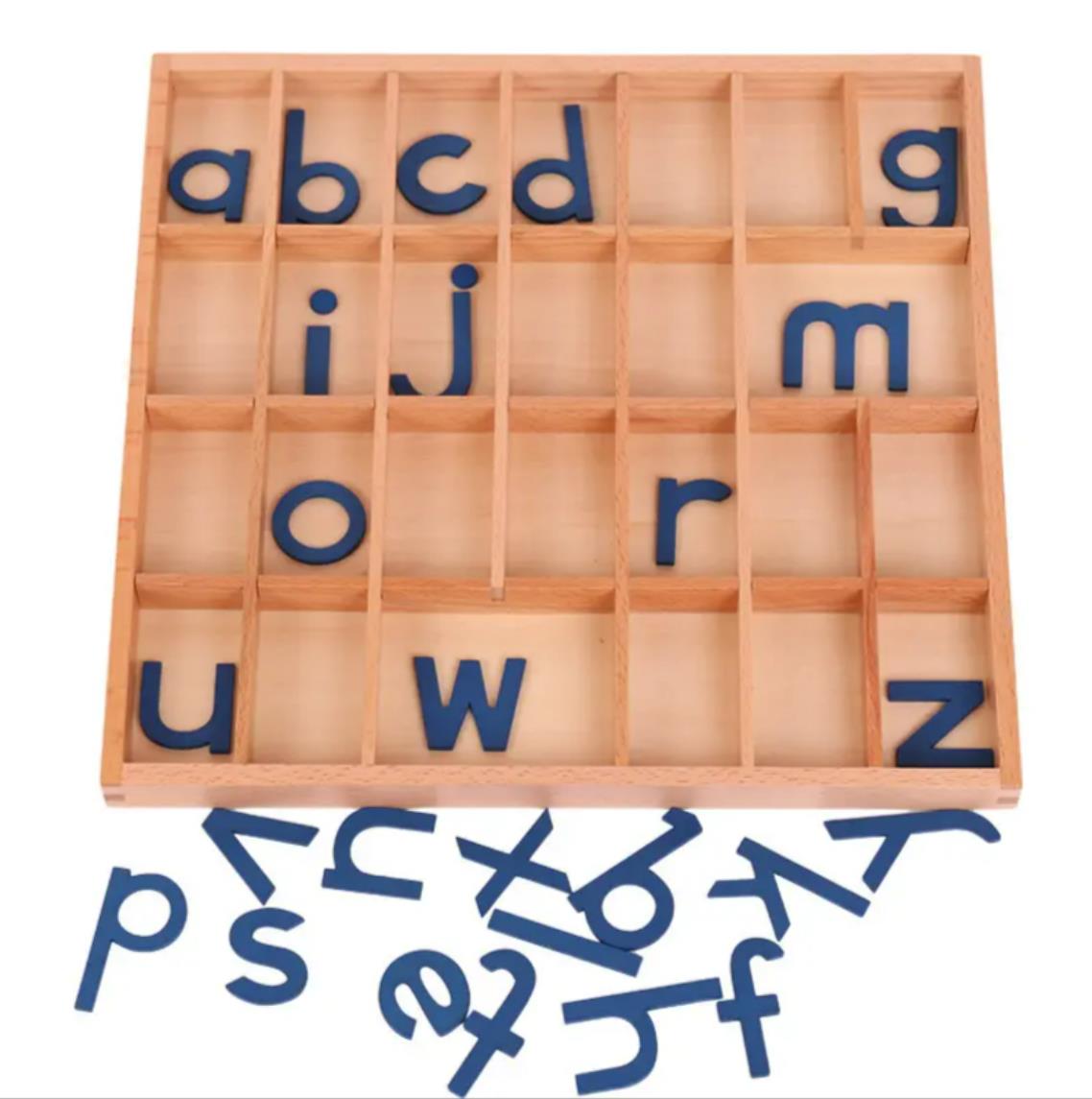 Organizado para la independencia: la clásica caja de madera con 26 compartimentos permite a los niños mantener el orden, encontrar letras fácilmente y trabajar de forma independiente: un principio clave de Montessori.