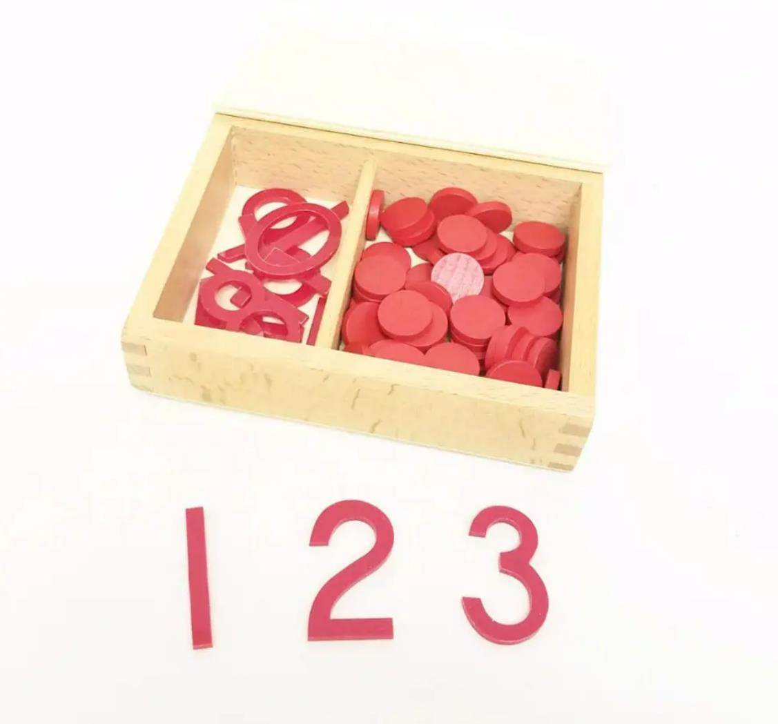 55 fichas (discos) de madera roja: una cantidad precisa de fichas idénticas y suaves que se utilizan para representar las unidades de cada número.