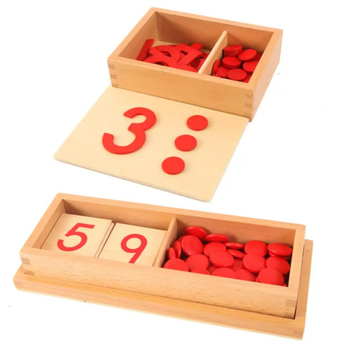 Caja de almacenamiento duradera: una caja de madera especialmente diseñada con compartimentos para el almacenamiento organizado de números y contadores, promoviendo el orden y la independencia.