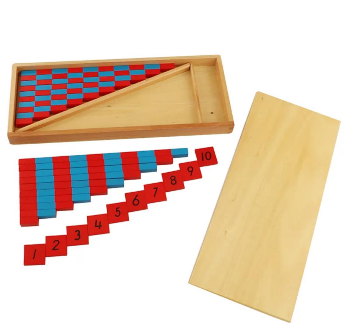 Este material está diseñado para desarrollar una comprensión sólida y sensorial de las matemáticas básicas. Sirve como la primera lección formal sobre cantidad del niño, introduciendo los conceptos básicos de contar, secuenciar y comparar cantidades (más/menos). Al manipular físicamente las varillas, los niños desarrollan un verdadero "sentido" de los números, sentando las bases esenciales para todas las operaciones aritméticas futuras.