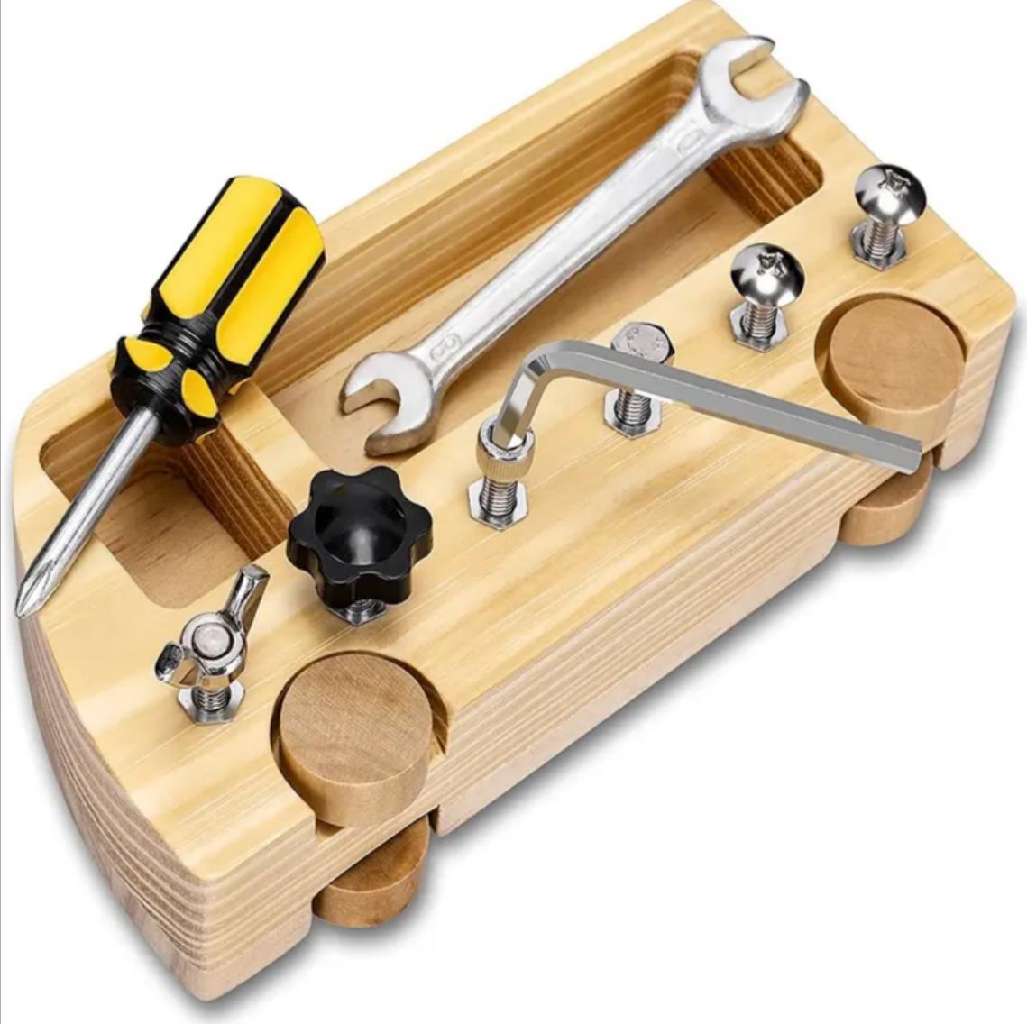 Tablero de actividades de madera Montessori: juego de habilidades con destornilladores