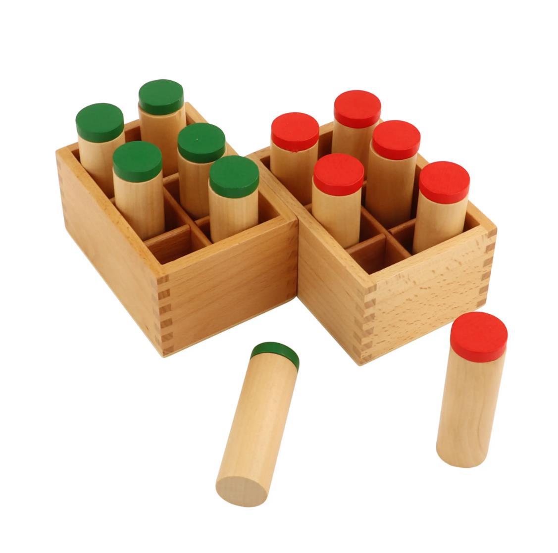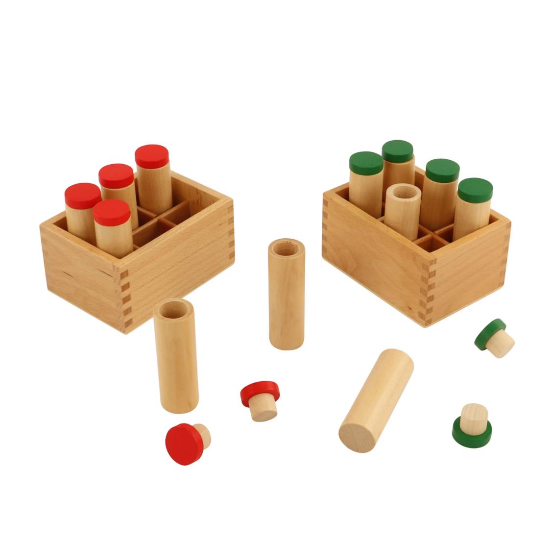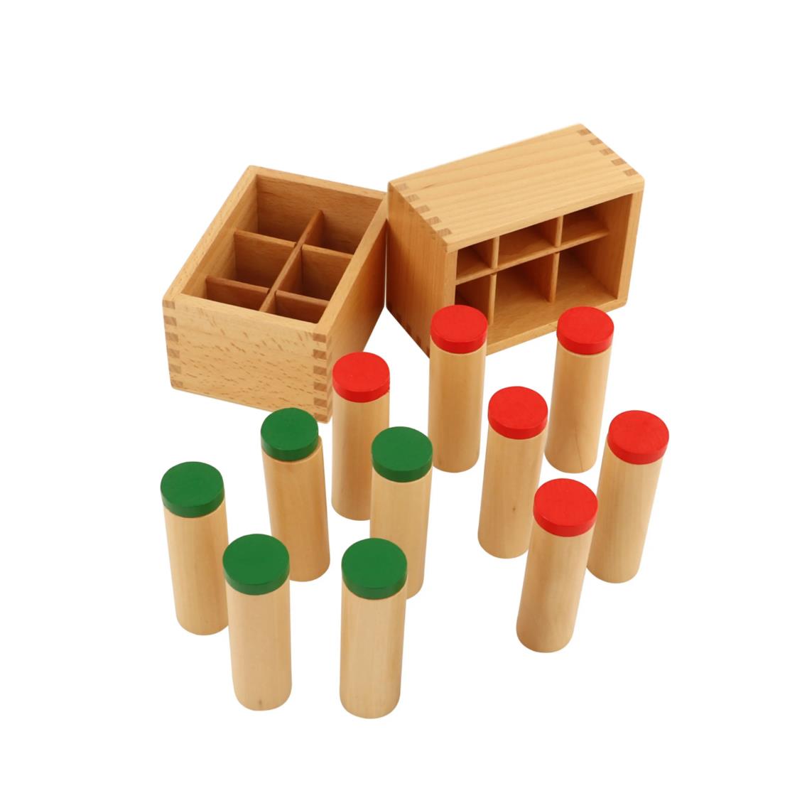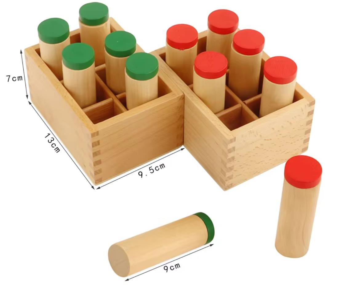 Este material sensorial clásico Montessori está diseñado para aislar y refinar el sentido del olfato. El juego consta de una bandeja de madera que contiene dos series idénticas de frascos opacos, normalmente cuatro pares en total. Cada frasco contiene una bola de algodón impregnada de una esencia natural distinta, que invita al niño a un mundo de sutiles descubrimientos aromáticos.