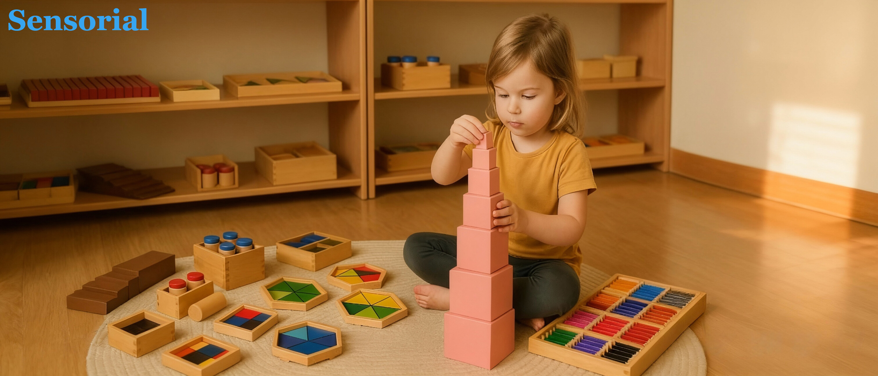 **Sensorial learning** is not merely play; it is the process of making abstract concepts (like size, weight, and color) concrete and measurable. Dr. Montessori believed that through repeated, hands-on interaction with specially designed **sensorial materials**, the child’s intelligence is structured. These materials serve as the "keys to the world," enabling the child to classify and organize the vast sensory input they receive daily.